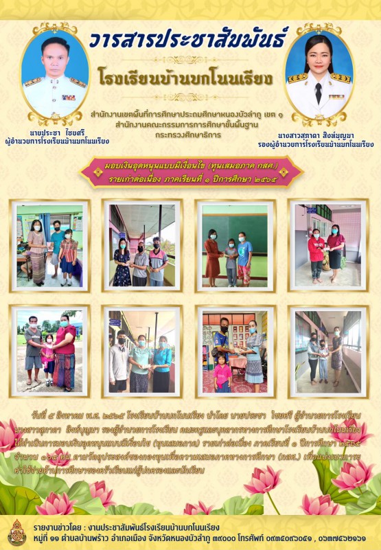 มอบเงินอุดหนุนแบบมีเงื่อนไข(ทุนเสมอภาค กสศ.) รายเก่าต่อเนื่อง ภาคเรียนที่ 1 ปีการศึกษา 2565